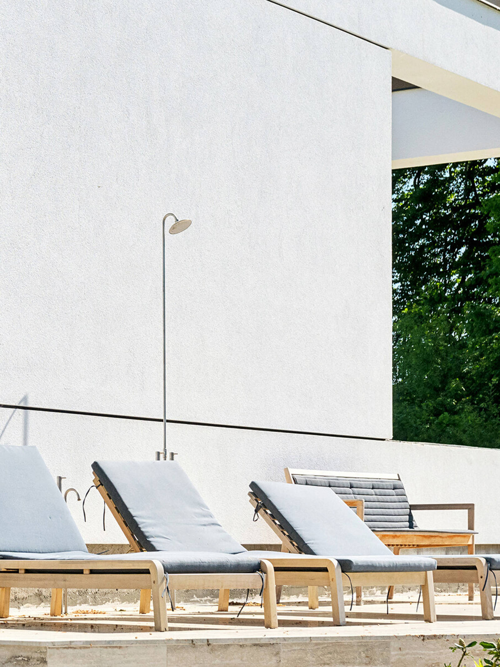 Men det kunne være hyggeligt med et udendørs spabad i det nye hus, tænkte parret og aftalte et møde med en leverandør. Og så blev udendørs spa i stedet til et lækkert pool-område med klinker i ægte travertin.
