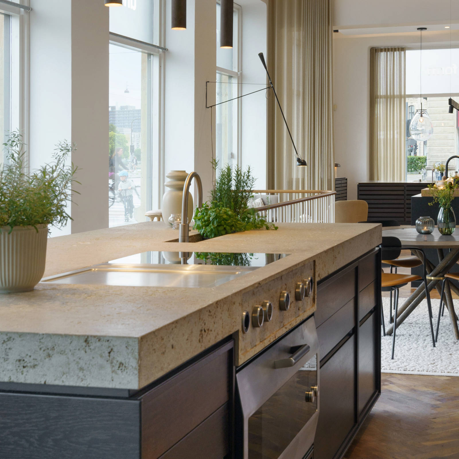 Når du vælger et uno form snedkerkøkken, vælger du et køkken, som kan holde i mange år, og det smitter af på valget af materialer. Vi prioriterer de langsigtede, klassiske løsninger og naturens smukke materialer – også når vi skal vælge bordplade.